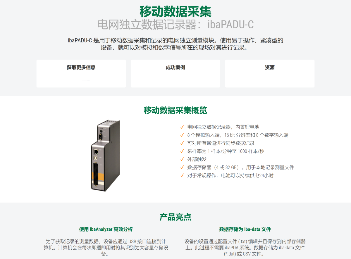 产品概述: 电网独立数据记录器:ibaPADU-C